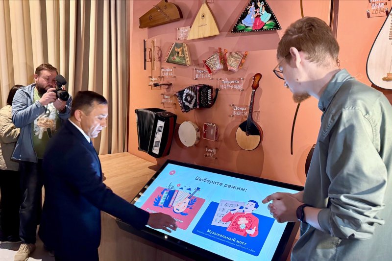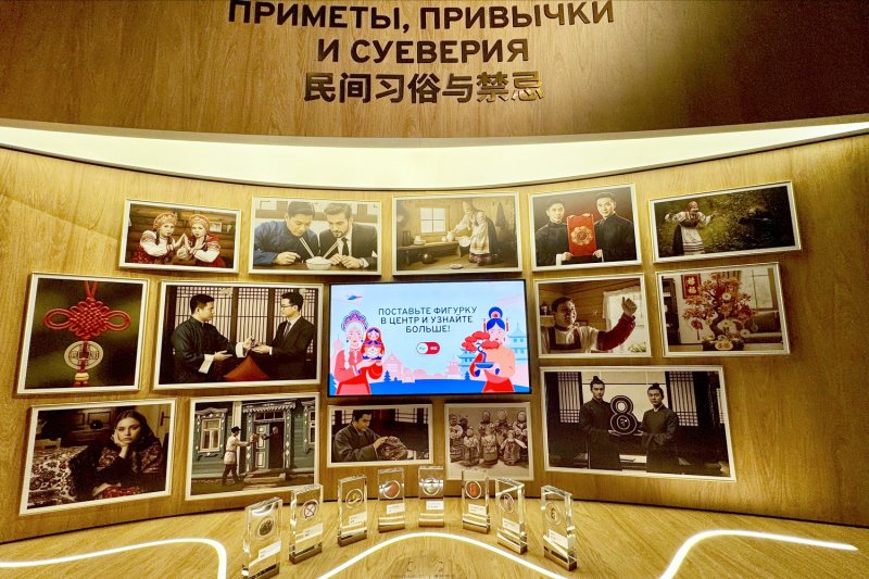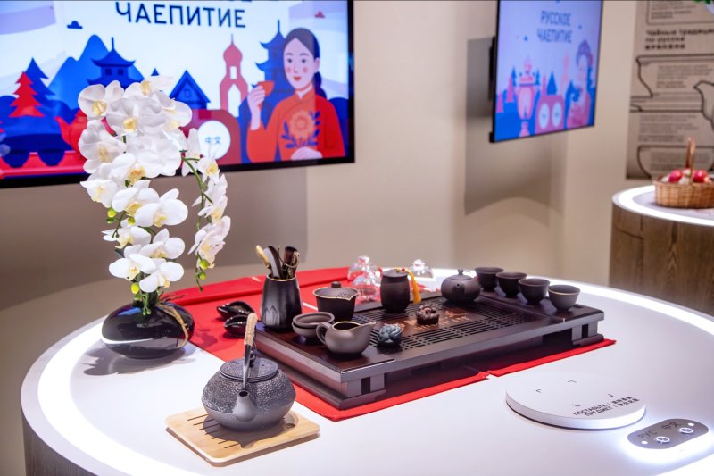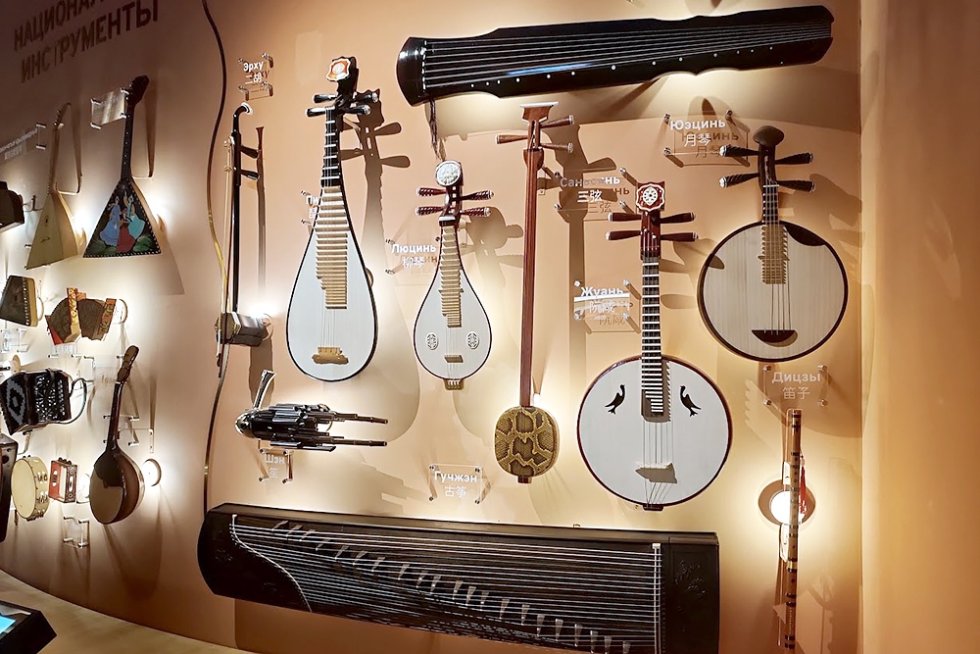 穿过大厅,在第一展厅,参观者可以了解俄语和汉语这两种语言的历史、现状,及彼此间的差异。随后的展览,包含实体展品和虚拟展品。神经网络技术也为博物馆工作人员提供了帮助,例如在展示两国乐器的展厅里,它不仅能让游客听到巴拉莱卡琴或笛子的声音,还能帮助游客创作自己的音乐。